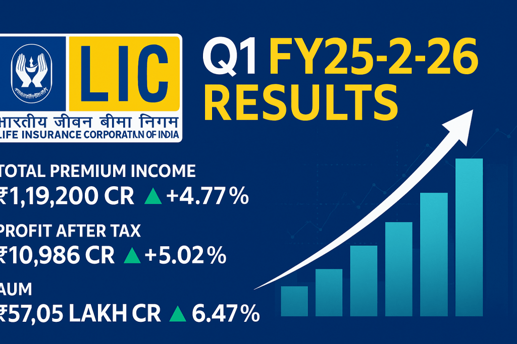 India’s largest life insurer, Life Insurance Corporation of India (LIC), announced its Q1 FY25-26 results on August 7, 2025. The performance marks a steady stride toward profitability, business mix transformation, and operational efficiencies. Let’s dive into what this means for investors.